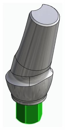 Az Anatómiai fej, ferde, 15°, pozicionált, B-típus egy implantátumszintű, csiszolható felépítmény, amelyet a nem ideálisan pozícionált implantátumok szögkorrekciójára, valamint esztétikus és funkcionális pótlások kialakítására fejlesztettek. A 15°-os ferde kialakítás lehetővé teszi a protetikai tengely és az implantátumtengely közötti eltérések kompenzálását, míg az anatómiai forma elősegíti a természetes ínykontúr kialakítását.